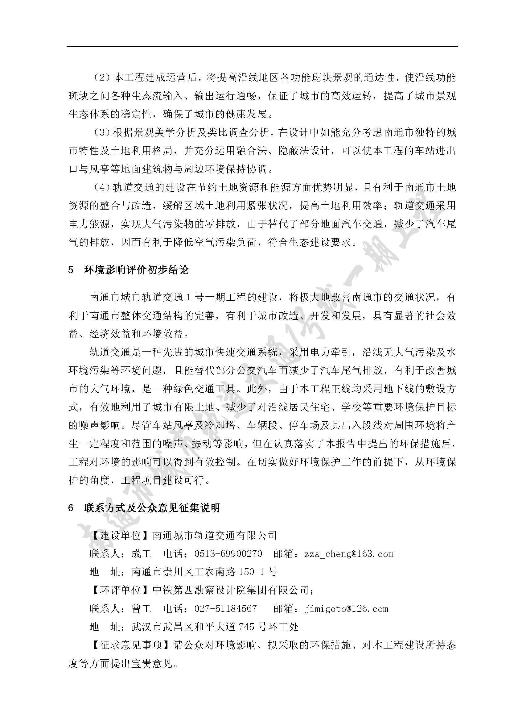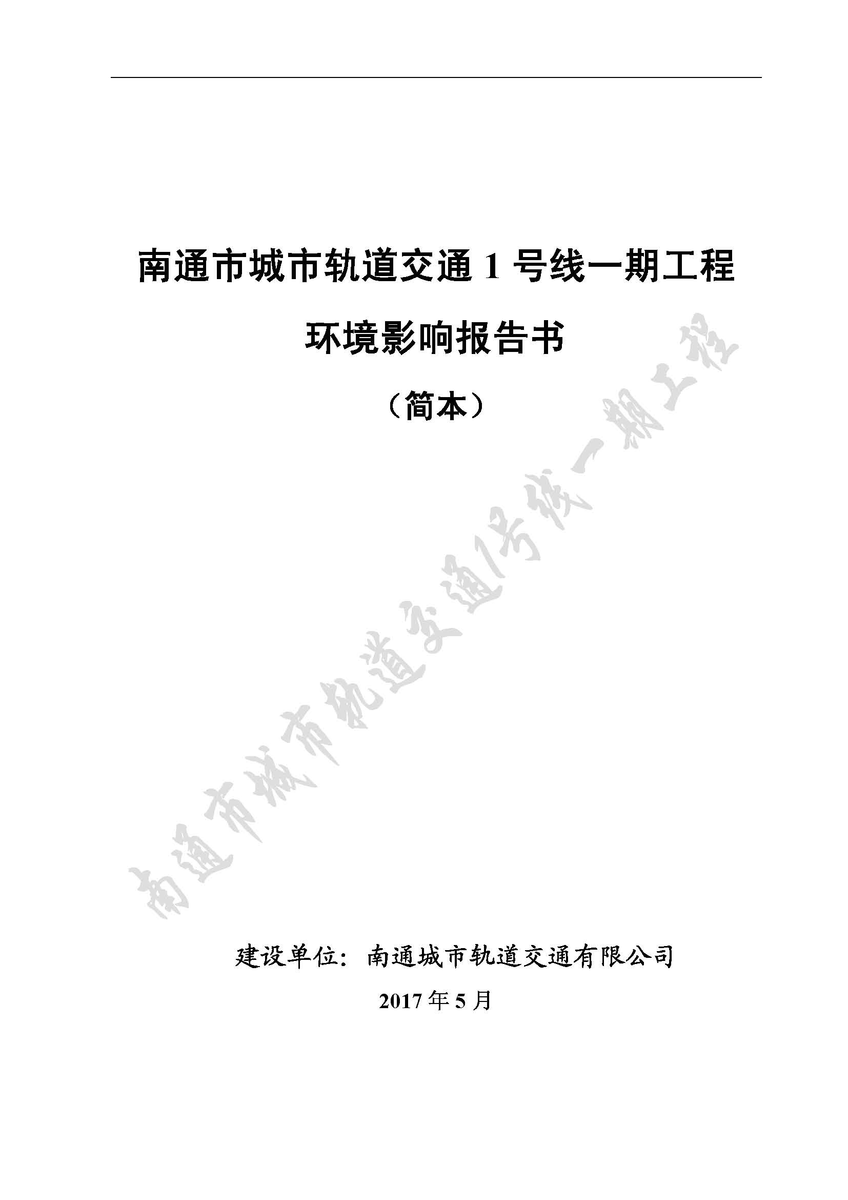 附:南通市轨道交通1号线一期工程环境影响报告书(简本)